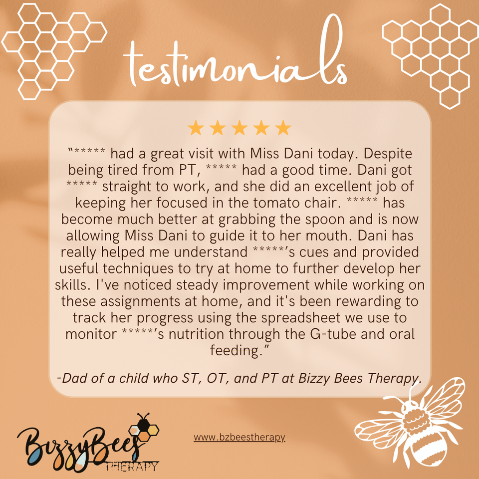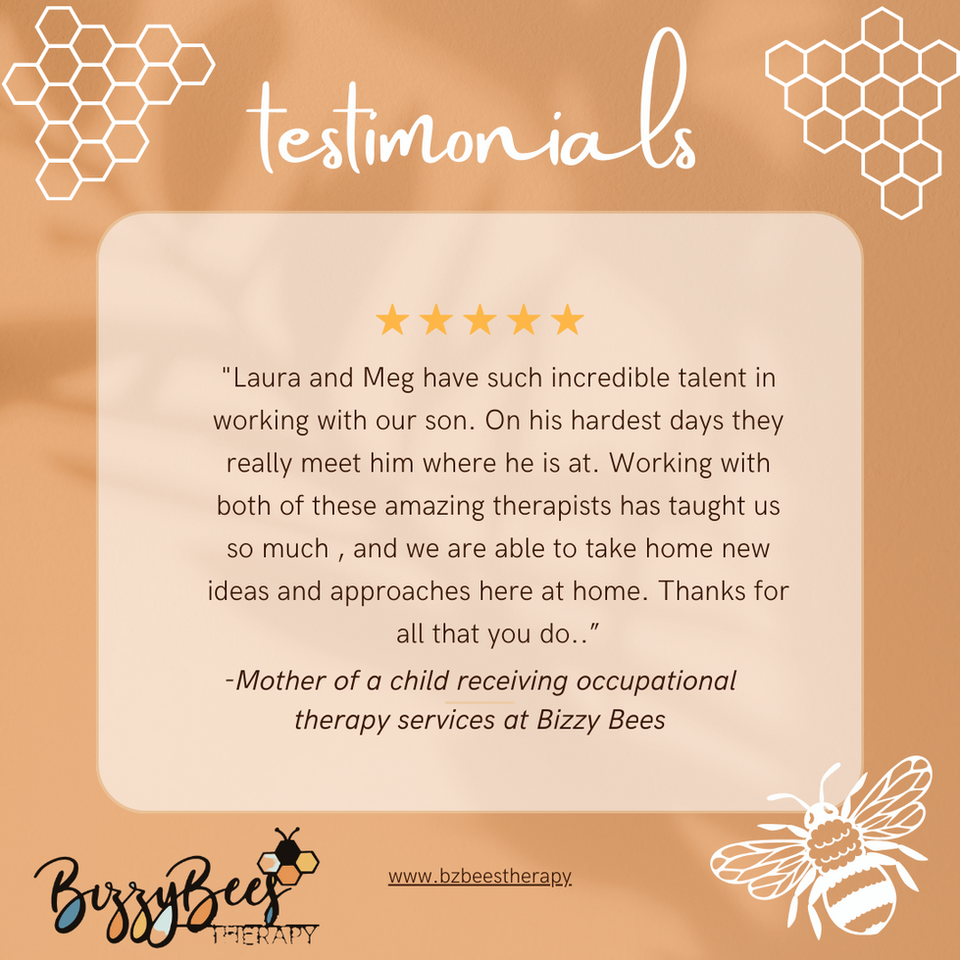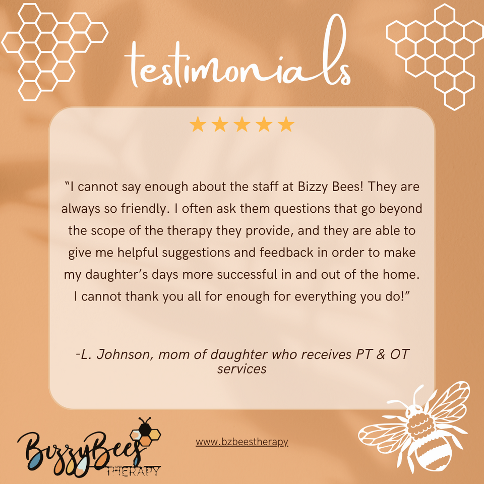 Since opening our doors in June of 2021, Bizzy Bees Therapy has been providing OT, PT, speech and feeding therapy services to the children and families in our community. We offer a wide variety of specialty services and treatment methods to meet the needs of even the most complex cases. Come on in to see what the BUZZ is all about!