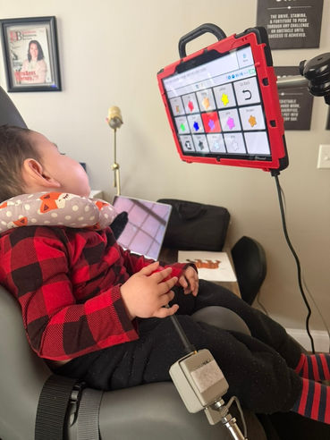 While AAC can represent any alternative communication technique, high tech AAC utilizes speech-generating devices to support language development, social connection, communication of needs, and occupational engagement. These devices utilized customized applications, tailored to your child's specific abilities. We work together with families to ensure funding plans meet their needs inclduing insurance, grant funding, or private funding opportunities. While there are no pre-requisites to high tech AAC, clinicians always trial least restrictive evidence-based practices and interventions first. But this team is well-equipped and highly skilled if your child needs an alternative approach to enhance communication and language development.